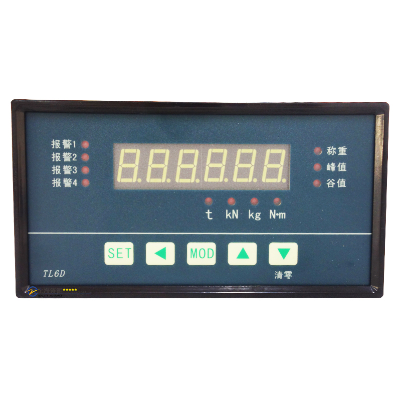 按“◀”鍵,顯示“000000”,且末位閃爍,通過“◀”“▲”“▼”三鍵,將顯示值設定為傳感器裝置將要加上的重量值(此時傳感器可以不加載),設定完畢,給傳感器加上設定的重量,穩(wěn)定后按“SET”鍵,儀表顯示“-”、“- -”、“- - -”、…“- - -- - -”*后顯示稱量值,表明標定過程結(jié)束。